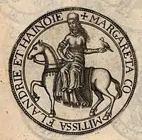 ![]() Маргарита Ельзаська Ілюстрація з книги «Альбом історії графства Фландрія» 1849 року. Робота Фелікса Він'є. | |||