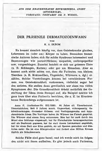 - Ekbom, K. A. 1938. Der praesenile Dermatozoenwahn. Acta Psychiatr. Neurol. Scand. 13:227-259. (англ.)