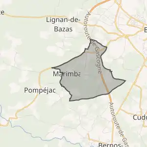 Муніципалітет розташований на відстані[2] близько 540 км на південь від Парижа, 55 км на південний схід від Бордо.