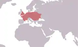 Західна, Центральна і частково, Східна Європа від Англії до басейну Дністра включно і на півночі від Піренеїв і Альп до басейну Північного і Балтійського морів. В Україні зустрічається в басейні Дунаю (пониззя, басейну Тиси, Пруту і Сірету), Дністра та Вісли.