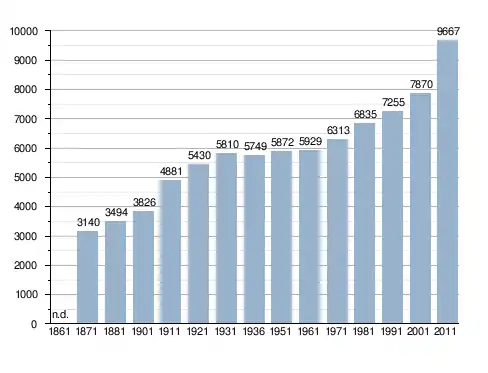 Станом на 31 грудня 2014 року в муніципалітеті офіційно проживало 717 іноземців з 47 країн, серед них 124 громадяни країн Євросоюзу та 26 громадян України.[4]