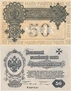 | Банкноти | 1, 5, 10, 50 марок | ||