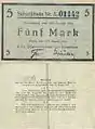 В 1914 році Камерунським урядом в обіг були введеним екстрені купюри номіналами в 5, 50 та 100 марок.
