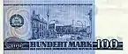 100 | 145×62 | синій | Автор вчення комунізму Карл Маркс | Вулиця Унтер-ден-Лінден з краєвидом на Палац республіки. На задньому фоні можна побачити берлінську телевежу і Червону ратушу. |