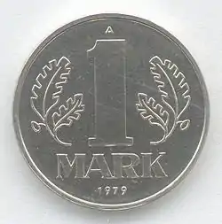 - Марка Німецького емісійного банку (Mark der Deutschen Notenbank, MDN) — з 1 серпня 1964 по 31 грудня 1967;