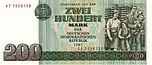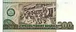 В 1985 році Державний банк НДР надрукував банкноти номіналом 200 і 500 марок на суму в миліарди марок. За рішенням партії Вони не були пущені в оборот в зв'язку з побоюваннями, що народ може сприйняти їх як ознаку інфляції. З іншої сторони, торгівля потребувала такі банкноти при продажу деяких товарів (наприклад, автомобілей). Про існування цих банкнот стало відомо лише після Колапсу НДР[2][3].