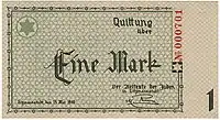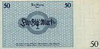 | Банкноти | 50 пфенігів, 1, 2, 5, 10, 20, 50 марок | ||