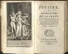 - Юстина, або Нещасна доля доброчесності (Justine ou les Malheurs de la vertu, роман, вторая редакция, 1788)