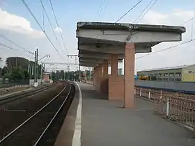 На станції дві пасажирські платформи берегового типу, з'єднані між собою тільки настилом через колії і зміщені одна відносно другої. Обидві платформи обладнані типовими навісами. Каса розташована на платформі «від Москви».