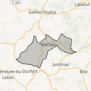- Розташування муніципалітету Марльяк на мапі Франції та сусідні муніципалітети