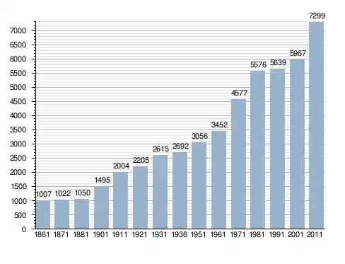Станом на 31 грудня 2014 року в муніципалітеті офіційно проживало 379 іноземців з 38 країн, серед них 94 громадяни країн Євросоюзу та 8 громадян України.[4]