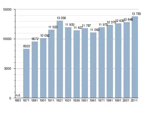 Станом на 31 грудня 2014 року в муніципалітеті офіційно проживали 854 іноземці з 54 країн, серед них 211 громадян країн Євросоюзу та 48 громадян України.[4]