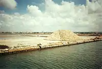 Природний заповідник Станьйоне: лагуни соляного промислу та один з вітряків, близьких до причалу на Мотію