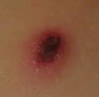 | Симптоми | гарячка, інтоксикація, афект первинний, лімфоаденопатія, виразка, висип, папула і пляма |