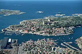 Розташовується за 30 км на північний захід від Гетеборга на островах Марстрандзон і Куйон . Населення міста — 375 осіб[3].