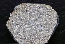![]() Марсіанський метеорит NWA 7034, кодова назва — «Black Beauty», важить приблизно 320 г.[2] | |