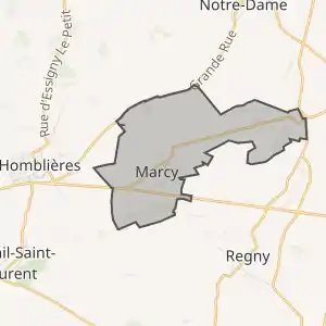 - Розташування муніципалітету Марсі на мапі Франції та сусідні муніципалітети