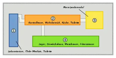 - Обсяг модуля — 50 м³. Використовується для імітації посадкового марсіанського модуля. Модуль розрахований на 2-3-місячне перебування 3 чоловік.
