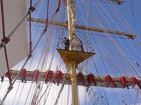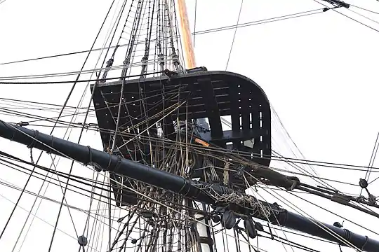 Марс фрегата «Герміона» знизу з реєю, вантами, путенс-вантами і стень-вантами