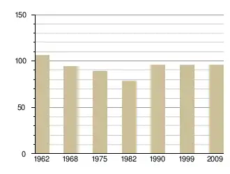 - Insee : historique des populations par commune depuis le recensement de 1962, наведено за французькою вікіпедією