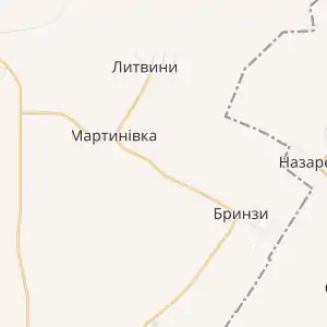 Село Мартинівка знаходиться біля великого болота урочище Довге Болото, на відстані 1 км від села Бринзи та за 1,5 км від села Литвини.
