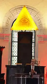 Символізм потрійності в оздобленні мартиністського храму зображений через три світочі на вівтарі й три тканини, що покривають вівтар[12].
