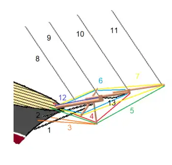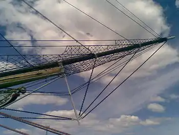 У разі наявності бом-утлегаря він споряджається парою бом-утлегар-бакштагів, що теж проходять через ноки блінда-гафеля.