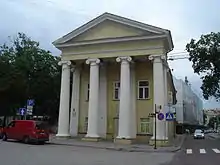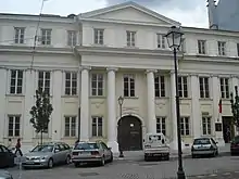 До палацу Шуазелів, відомому також як палац де Реусів (Палацова площа, потім площа Муравйова, в міжвоєнні роки площа Наполеона, після Другої світової війни площа Кутузова, нині площа С. Дауканто, S. Daukanto a. 2 / Universiteto g. 10), імовірно за проектом Кнакфуса прибудований величний портик у дусі зрілого класицизму. Розташовані на однаковій відстані чотири іонічні колони підпирають масивний антаблемент і фронтон. Ритм колон повторюється пілястрами на стіні. Монументальний портик є одним з акцентів композиції площі.