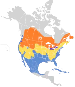 Мігруючи, вони в більшості рухаються на південь до Мексиканської затоки і Атлантичного і Тихоокеанського узбережжя Північної Америки і Великих озер.