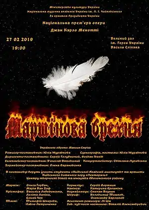 ![]() Афіша опери "Мартінова брехня" (НМАУ, 2018) | ||||
