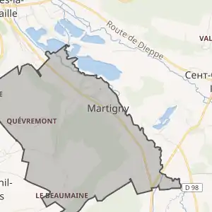 - Розташування муніципалітету Мартіньї на мапі Франції та сусідні муніципалітети