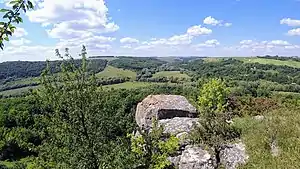 З верхівки Марусиного каменя відкривається краєвид на урочище Гамарня та долину річки Ушиця[2].