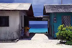 ![]() Маршальські діти біля хат, о-в Маджуро, березень 2000 | |
