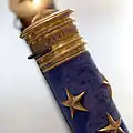 Титул маршала Франції передбачає знак розрізнення з 7-ма зірками. Маршал Франції також нагороджується Маршальським жезлом, довгастим циліндром оздобленим оксамитом блакитного кольору зображеннями 7 зірок. У минулому жезл прикрашали орнаментом з геральдичних лілій (фльор-де-лі, герб Валуа) за часів монархії Бурбонів та імперськими орлами за правління Наполеона І. На кінцях жезла вигравіювали золоту печатку з латинським написом: лат. Terror belli, decus pacis (Лютий у війні, з пошаною в мирі). Маршальський жезл ламався в разі здачі в полон маршала або в день смерті короля.