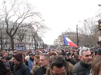 - Le Parisien, ред. (11 січня 2015). Une marche républicaine historique : plus de 3,7 millions de Français ont défilé. Процитовано 12 січня 2015..