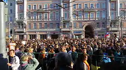 - 16:05 — виступив Роман Доброхотов, лідер «Демократичного вибору», зі словами «Это война цивилизации с дикостью. Путин любит титушек, а они — Путина. Да и сам Путин — титушка международного масштаба! Им не нужна свобода, им надо чтобы их немного подкармливали. Но есть одна проблема — это мы с вами!»