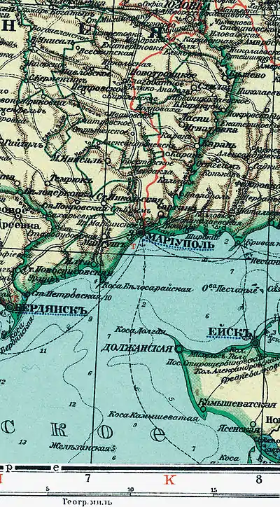 Маріупольський повіт Катеринославської губернії займав південно-східну частину губернії. Південною межею повіту було Азовське море.