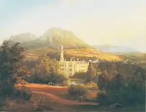 нім. «Nichts übertrifft an Vollkommenheit das Bild des auf inneren Frieden, religiösen Sinn, geistige Bildung gegründeten Familienglücks der Besitzer von Fischbach.»[1]