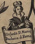 - Марі́я Па́рмська (порт. Maria de Parma) — за герцогським титулом чоловіка.