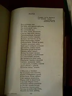 | Поема «Марія» – твір «неймовірної висоти українського релігійного світогляду», твір «незрівнянної тонкости мистецької правди, глибокого почуття і такої прекрасної простоти, що в порівнянні з ним Ренанове "Життя Ісуса" видається блідою і надуманою літературою[8] | ||