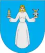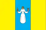 Прапор. Співвідношення пропорцій 2:3, розділений на три рівні вертикальні смуги. Зліва і справа — жовтий колір, у центрі — синій. На тло прапора може накладатися щит герба або один із його елементів.