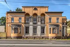 - Двоповерховий будинок у стилі неокласицизму на Західній алеї, 1 у Санкт-Петербурзі. Споруджений 1912 року.[16]