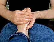 Маса́ж (фр. massage, від masser — «розтирати») — сукупність прийомів механічної і рефлекторної дії на тканини і органи, у вигляді розтирання, тиску, вібрації або погладжування, що проводяться безпосередньо на поверхні тіла людини, як руками, так і спеціальними апаратами, через повітряне, водне чи інше середовище, з метою досягнення лікувального ефекту. Масаж є активним лікувальним методом, суть якого полягає в нанесенні дозованих механічних подразнень на тіло пацієнта різними, методично виконуваними спеціальними прийомами, що можуть виконуватися рукою масажиста або за допомогою спеціальних апаратів.[1]