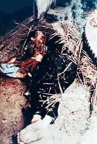 «… 16 березня вони прийшли цілим натовпом та одразу забрали чотирьох родичів та відвезли до каналу. Ми благали їх не вбивати нас, залишити живими, а вони стріляли й стріляли. Вони штовхали нас, щоб ми впали на коліна, і починали стріляти. Мама загинула, діти загинули. Чоловіка мого тоді не було, тут взагалі не було чоловіків — лише жінки, старі й діти. Я була при смерті, без свідомості, поранена. Лежала, було холодно, дуже холодно, вся голова в крові, я вся тремтіла. Я розумію — це війна, але чому така жорстока, за що вбили ціле село? Просто прийшли — і всіх убили. Що за люди ці американці, які вбили матерів, дітей ?..»[17]