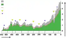 ![]() Фанерозойське зростання біорізноманіття з періодичними масовими вимираннями |