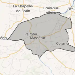 Муніципалітет розташований на відстані[2] близько 350 км на південний захід від Парижа, 60 км на північний захід від Нанта.