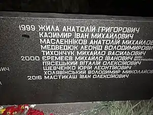 фрагмент стели пам'ятника "Чорна біль" з ПІБ МАСТИКАША ІВАНА ОЛЕКСІЙОВИЧА в м.Житомирі