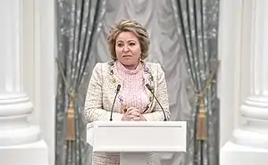 Матвієнко Валентина Іванівна (нар. 7 квітня 1949, Шепетівка, Кам'янець-Подільська область, Українська РСР) — радянський і російський політик та дипломат. Голова Ради Федерації Федеральних Зборів РФ з 21 вересня 2011 року.