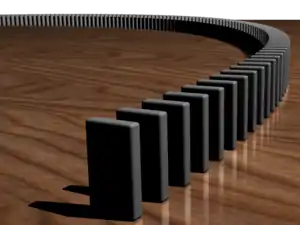 Індуктивне доведення наочно може бути представлене у вигляді т.зв. принципу доміно. Нехай довільне число кісточок доміно виставлено в ряд таким чином, що кожна кісточка, падаючи, обов'язково перекине наступну за нею кісточку (це індукційний перехід). Тоді, якщо ми штовхнемо першу кісточку (це база індукції), то всі кісточки в ряду впадуть.