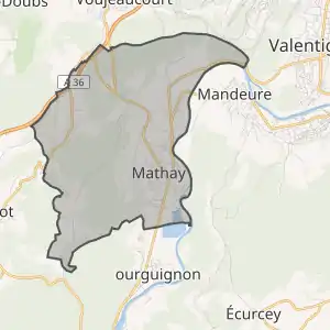 Муніципалітет розташований на відстані[2] близько 370 км на південний схід від Парижа, 65 км на схід від Безансона.